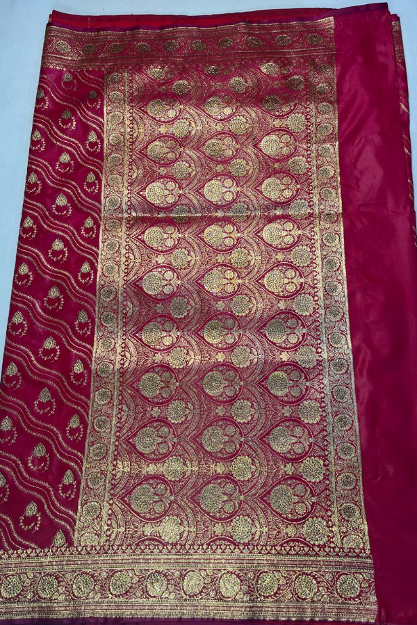 This saree has a beautiful zari border and excellent booti work, which gives it a traditional and royal look. If you are looking for something special for a wedding, festival or special occasion, then this saree is the best choice for you.