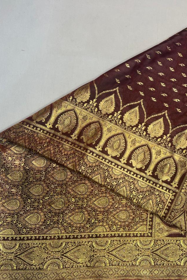 This saree has a beautiful zari border and excellent booti work, which gives it a traditional and royal look. If you are looking for something special for a wedding, festival or special occasion, then this saree is the best choice for you.