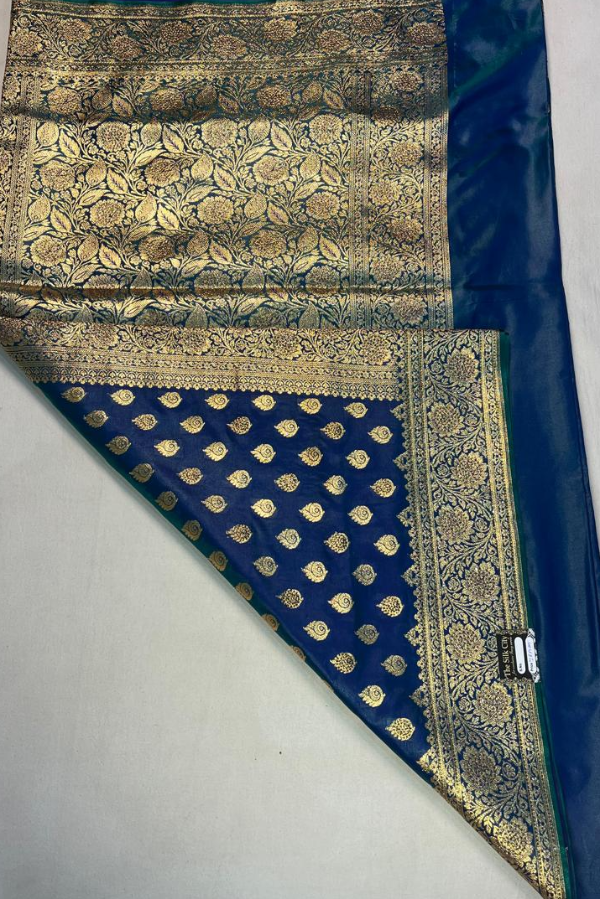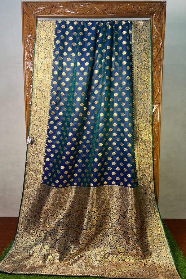 This saree is meticulously crafted on handlooms by Banarasi weavers, so every thread of it tells a unique story of art.