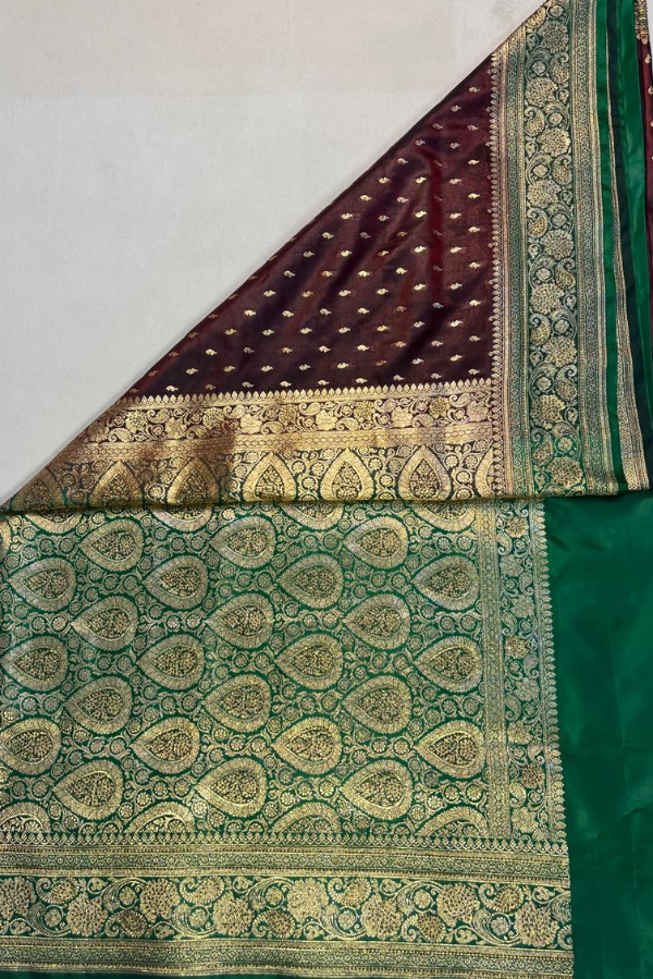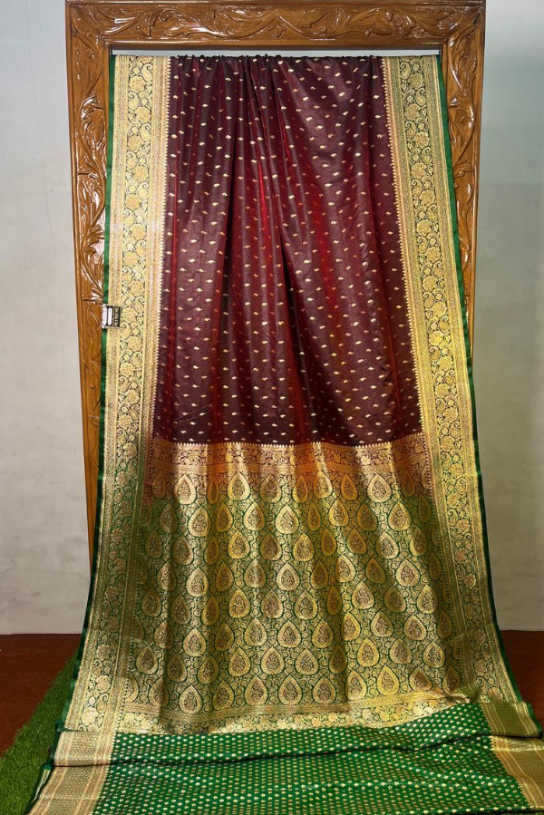 This saree has a beautiful zari border and excellent booti work, which gives it a traditional and royal look. If you are looking for something special for a wedding, festival or special occasion, then this saree is the best choice for you.
